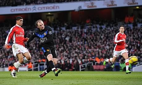 United, though, were quick to regain possession and then cut down any space for the home side. Nani and Darren Fletcher combined as they almost played in Rooney, but William Gallas made an important blocking tackle in the six-yard box.