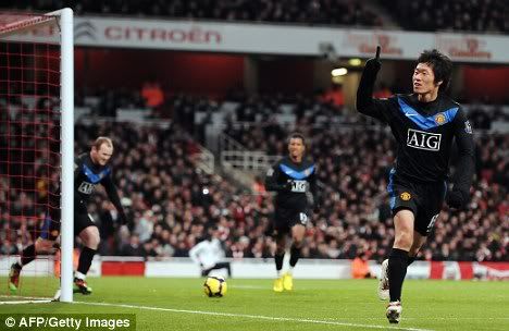 This time is was Park who broke clear, sprinting onto Fletcher's chip into the Arsenal half and then slotting past Almunia from just inside the box.