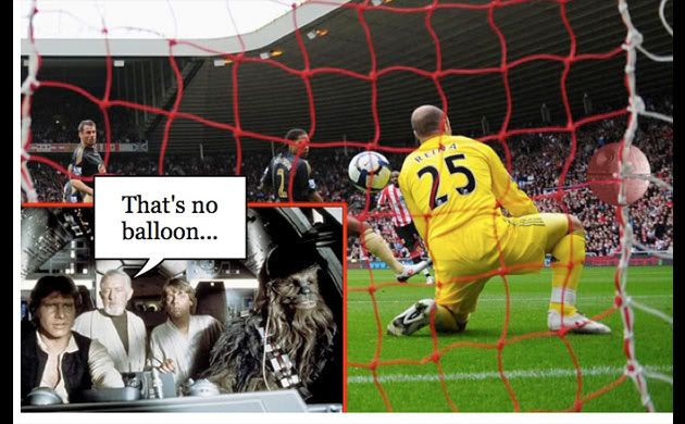Sunderland forward Darren Bent scores past Liverpool's goalkeeper Jose Reina.