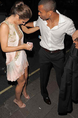 Here is one of the hottest celebrity babes, and FHM’s "Sexiest Woman In The World" 2009, Girls Aloud member Cheryl Cole (a.k.a. Cheryl Tweedy), celebrating her 26th birthday in London. But more importantly, here is the skanky see-through dress she wore. Wow, talk about leaving nothing to the imagination! Cheryl Tweedy-Cole is probably the top WAG and the hottest piece of ass in the UK right now, and she decided to prove it by wearing this see-through ghetto prom dress that pretty much is missing it's front. But the dress is not see-through where it really count so there is nothing to really see other than her flat belly. And sadly her boobs are almost as flat as her tummy so the cleavage is barely there. However to be fair to her, I think her boobs are glued and taped up to prevent her nipples from coming out and saying hi to the world. Remember when starlets dressed classy and elegantly? Well that was years ago, so get over it. Now bring in the skanks!