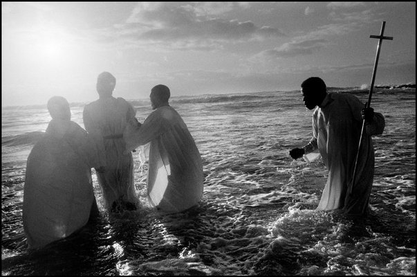 CAPE TOWN, South Africa—Every Sunday at dawn, priests of the Zion Church, from the Khayelitsha black township, take their newly converted congregation to the sea to be baptized through immersion, 1999.