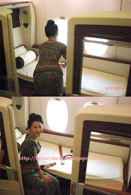 Each Suite offers an exquisitely private space, a lavish armchair with adjustable headrest & armrests. The Singaporean Leading Stewardess demonstrated their special turn-down service with fine linen & full-sized pillows. Each cabin features sliding doors & window blinds, offering you the freedom to decide on the level of privacy you prefer. With only 12 extraordinary Suites, available to the most discerning passengers, the S'pore Airlines Suites is truly in a class beyond first.