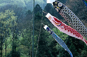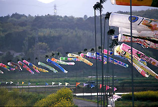 The origin of this custom lies in a legend from Okayama, south of Chizu. There was a benevolent giant name of Sanbutaro ( or Sanbotaro). He was so large that he could reach Kyoto in only three strides!! His head was buried down in Okayama, but for some reason that I have been unable to find out, his hands and feet were buried here.