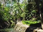 One of the main attractions of Shiratani Unsuikyo is a part of the forest that served as the inspiration for the Stugio Ghibli animated film Mononoke Hime (Princess Mononoke). Oga Kazuo, the lead artist for the film, spent lots of time here working on sketches for the movie's forests. The mountains of the film were further inspired by Akita Prefecture's Shirakami Sanchi Mountains. The small grove is at the far end of the park on the trail to Tsuji Toge Pass. If you continue on this trail it will lead you to the Jomonsugi by way of meeting up with the Anbo Trail about halfway to the entrance of the Okabu Trail. The round trip to the Jomonsugi takes approximately twelve hours and is more difficult than the Arakawa Dam Trailhead route.