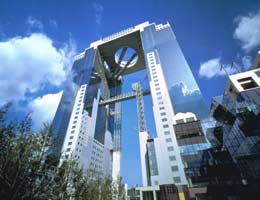 The spectacular high rise building offers a great view of Osaka city. Two main towers are connected with each other by the "Floating Garden".