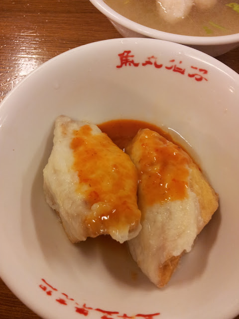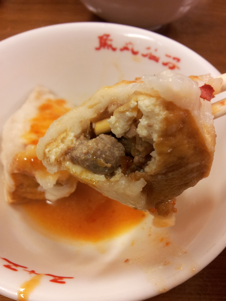 First thing we ate. Tofu wrapped around some meat with a sweet and sour sauce. Also covered in fish paste then fried.