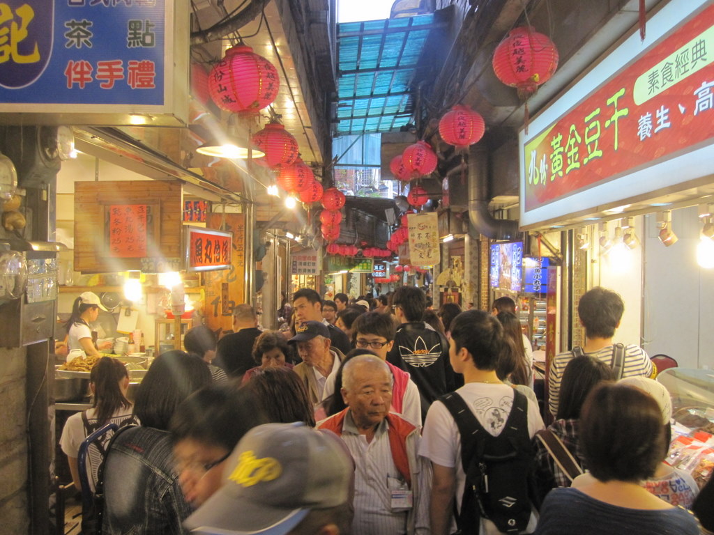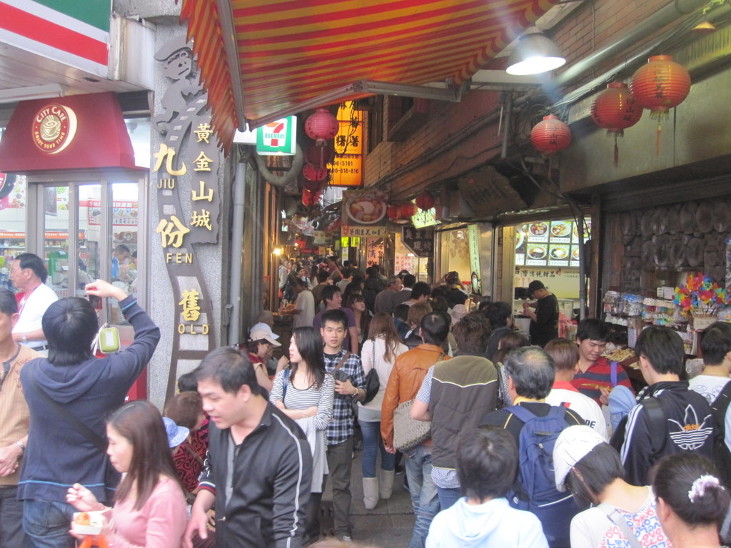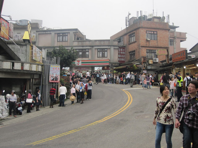 As you disembark from the bus, it really is a rather unassuming start. A sloping street and a few landmarks are all there is. The entrance to the street is nestled next to a 711, and it's a long winding street to the coast with only a few off shoots here and there. Food stands, shops and the numerous tea shops that Jiufen (�份) are famous for are everywhere along the street.
