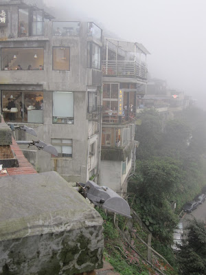 There are an copious amount of tea shops in Jiufen (�份). The most famous are the ones that over look the mountainside and offer gorgeous views. I didn't venture into any of the shops to sip on some tea.. because well.. I rather stuff my face with other goodies and sitting down and being served tea didn't sound like something I wanted to do. There is some regret here for not doing so, but the fact that it was a foggy day mitigates that somewhat as the views were obscured by mother nature.