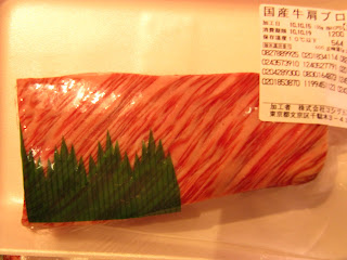 ***Extensive fat marbling in slices of high-grade Wagyu beef ***