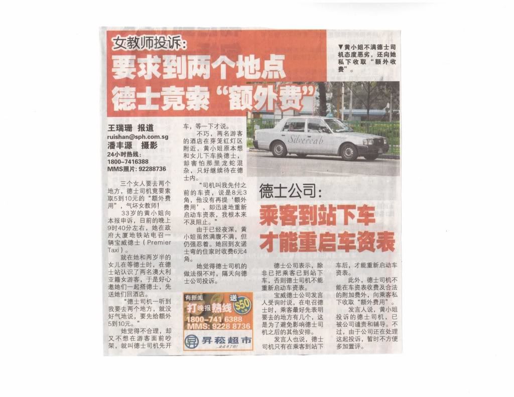 If got destination , later hop in one place became 3 places : " Aiyo miss ar , 3 places cannot lar , if i know 3 places , i won't take one . One place to Geylang , can , i can proceed my advance later , 3 places , my advance will cock-up ."