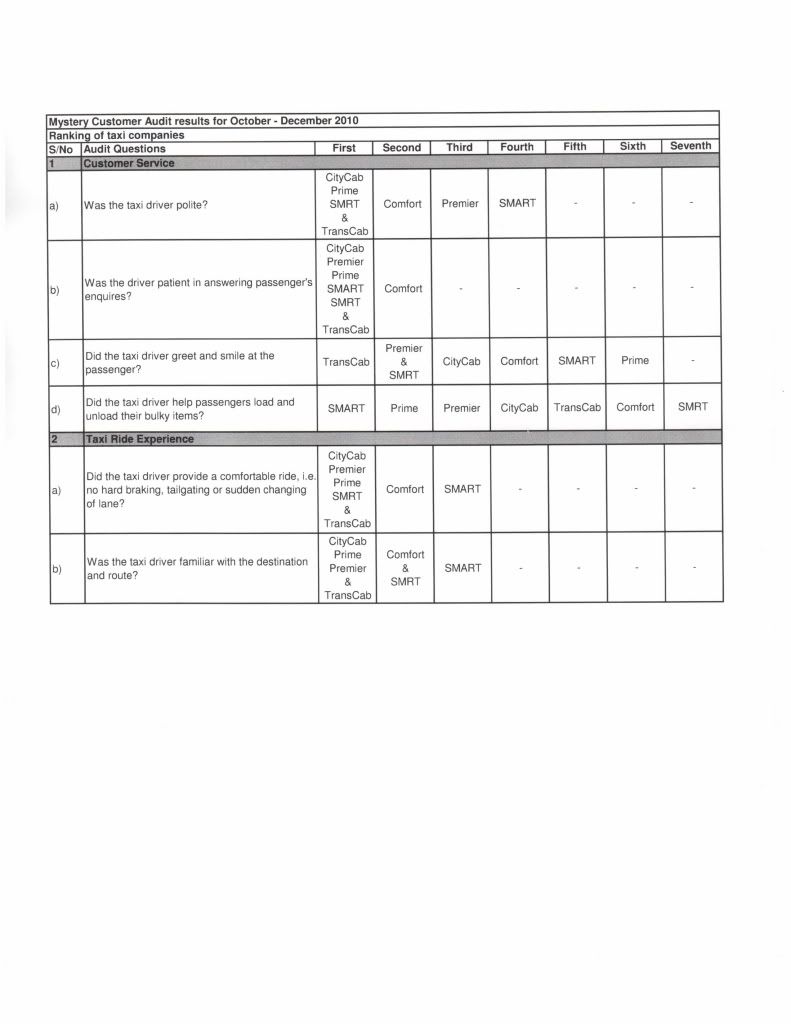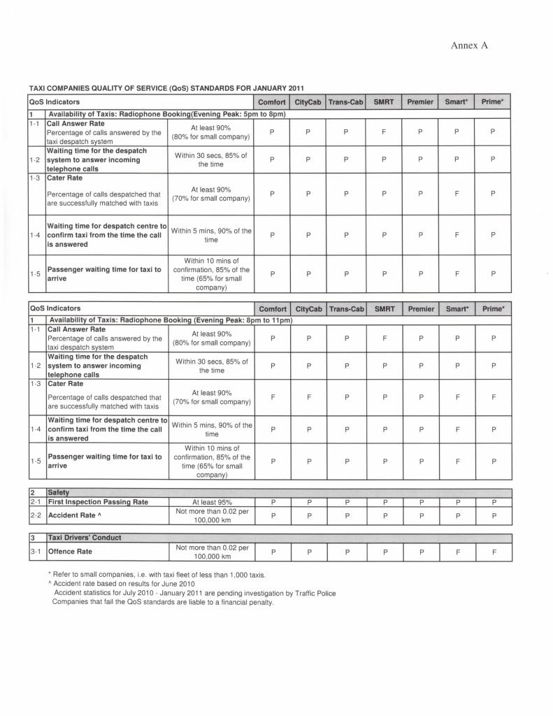 Base on the QoS reports .... only TransCab & Premier passed all categories .