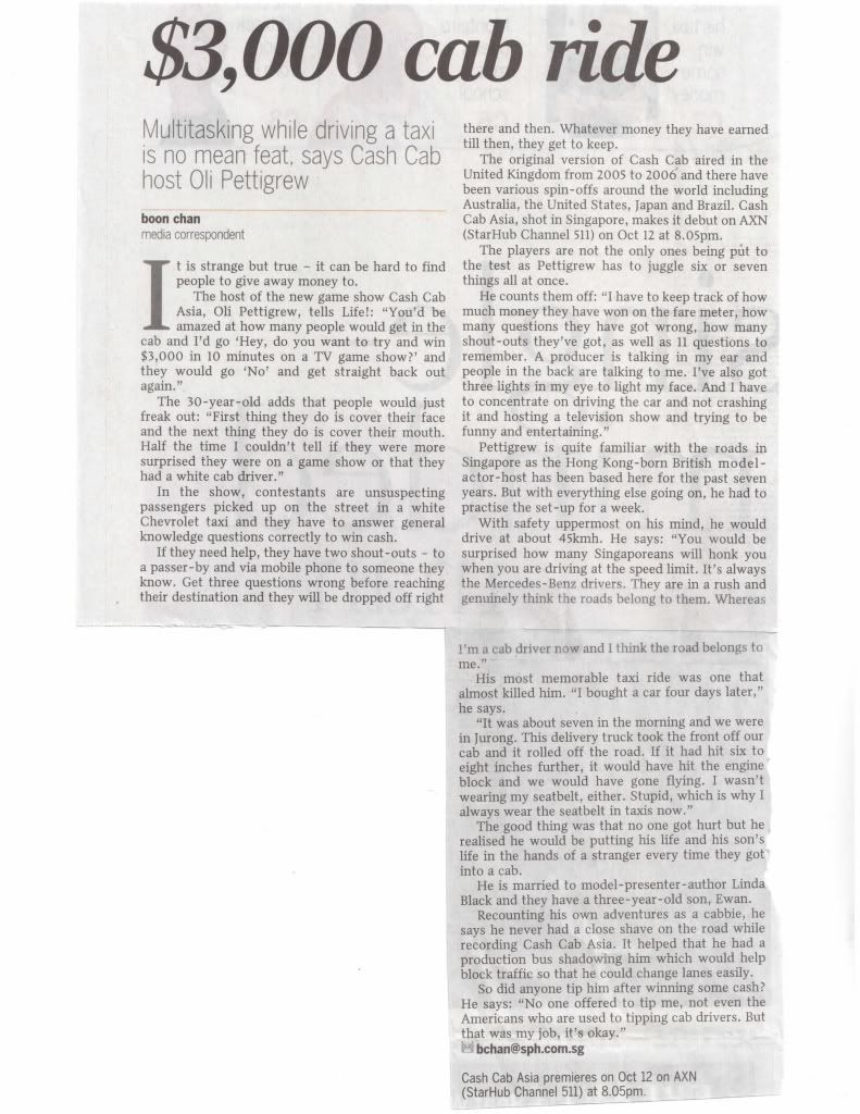 One of my pax told me, he ever took a cab drove by Angmo, I think must be him. quite a young angmo leh.