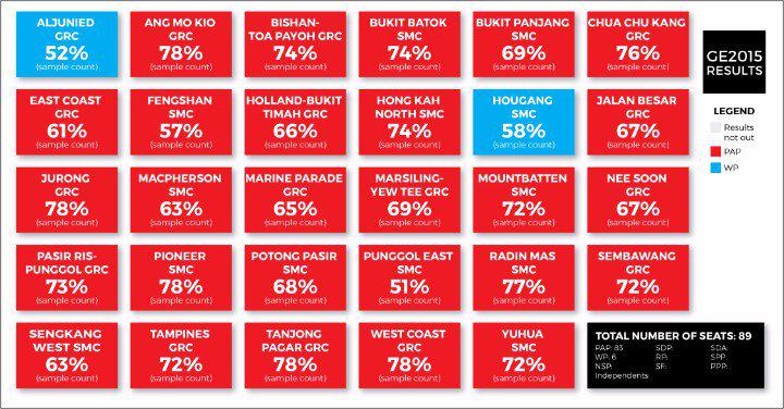 Sample counts for all 29 constituencies are in - PAP leading everywhere except Aljunied GRC and Hougang SMC