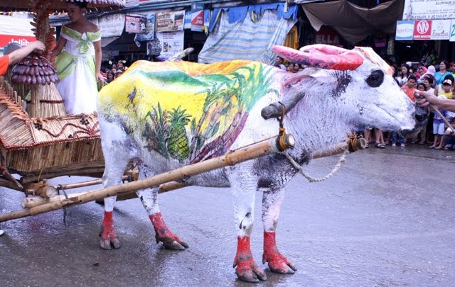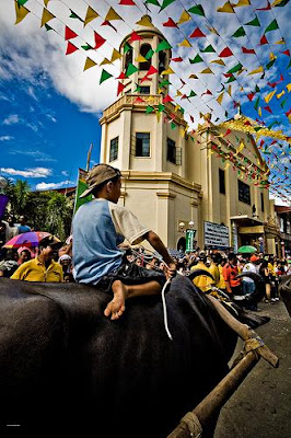 The celebration is manifested by hanging all sorts of fruits, candies, food crops and multi-colored kipings on bamboo poles. The affairs is highlighted by kneeling of carabaos in front of the church and the symbolic floats. Every year, a sea of frolicking humanity comes in droves to witness this showcasing inate talents of the carabaos.