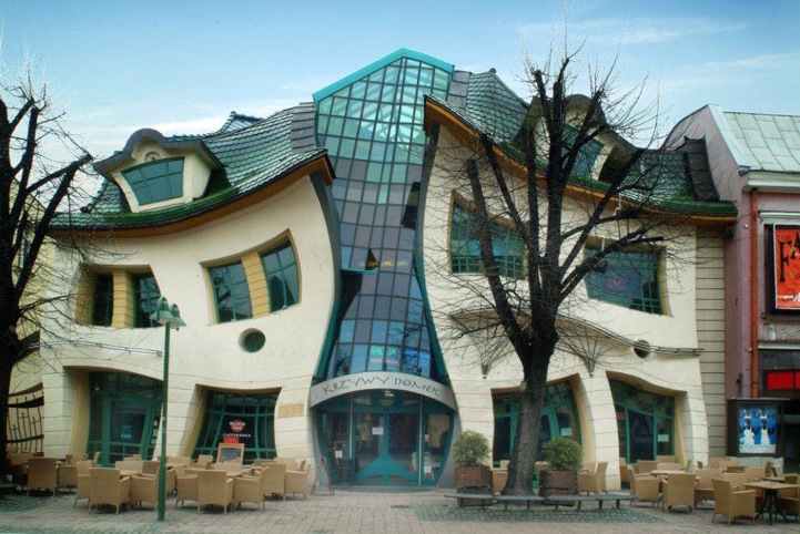 You may recall the unusual architectural constructs created by photo manipulation expert Michael Janzen and think you know better than to believe that such wacky, funhouse-like structures actually exist in this world, but think again. Krzywy Domek, translated as Crooked House, is a shopping center in Sopot, Poland that curves and slants for real! There's no photo editing tools used to depict this unconventionally structured edifice.